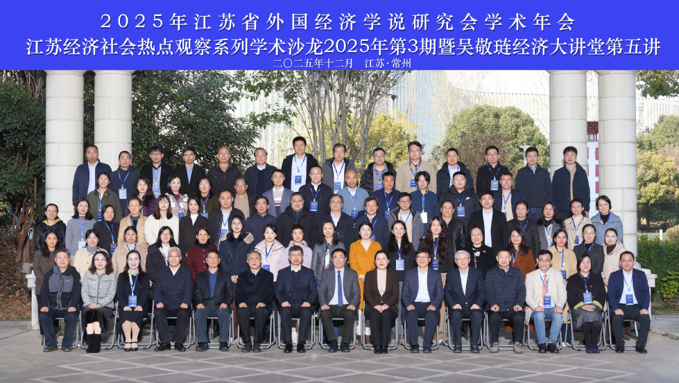 12月6日,2025年江苏省外国经济学说研究会学术年会暨吴敬琏经济大讲堂第五讲在常州大学举办。本次年会由江苏省哲学社会科学界联合会、常州大学联合指导,江苏省外国经济学说研究会(以下简称“学会”)主办,常州大学吴敬琏经济学院统筹承办。活动紧扣党的二十届四中全会提出的“加快高水平科技自立自强,引领发展新质生产力”重大战略部署,立足江苏“扛起经济大省挑大梁责任”的战略定位,聚焦新质生产力发展的理论创新与政策实践等前沿议题,既为江苏开放型经济高质量发展提供了坚实的智力支撑,也为常州大学对接学术前沿、服务地方发展搭建了重要桥梁。