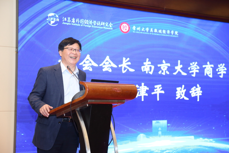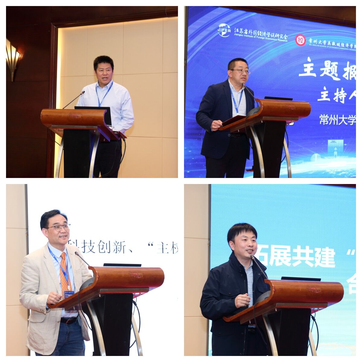 主旨演讲环节,主办方特邀东南大学经济管理学院徐康宁教授、南京大学商学院裴平教授、南京师范大学商学院蒋伏心教授、江苏省商务厅副厅长倪海清、南京财经大学原副校长张为付教授作主旨分享。各位专家学者围绕扩大制度型开放、建设金融强省、巩固壮大实体经济根基、以高水平开放应变局稳大局开新局、中美博弈优劣势分析等关键议题,深入阐释观点、分享前沿洞见。该环节由淮阴师范学院副校长张言彩教授与江苏大学财经学院院长胡绪华教授联合主持。