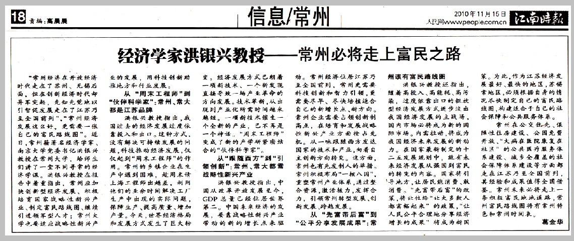 江南时报:经济学家洪银兴教授论道我校 新闻