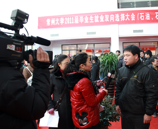 采访来我校招聘的中石化扬子石化公司的人事负责人