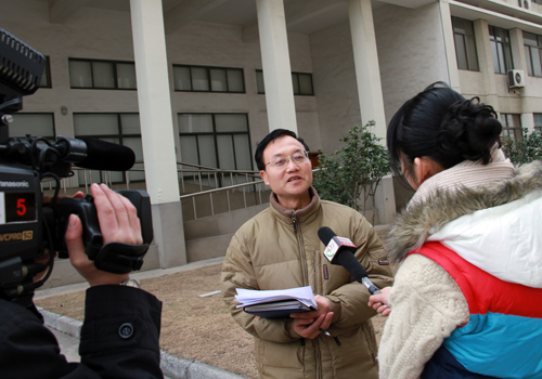 常州电视台 就报告内容采访我校文法学院胡学琦书记