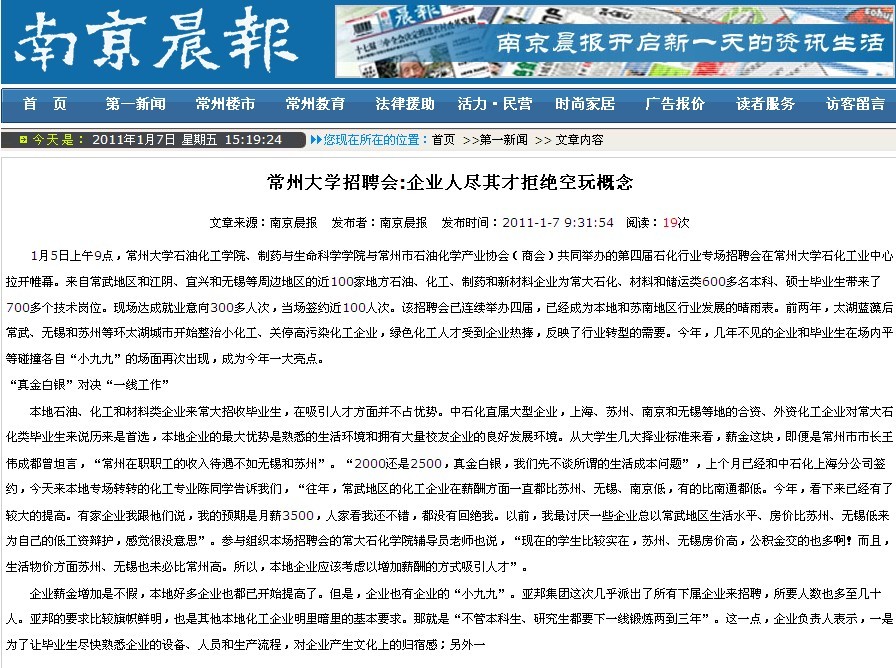 南京晨报 常州大学招聘会:企业人尽其才拒绝空玩概念