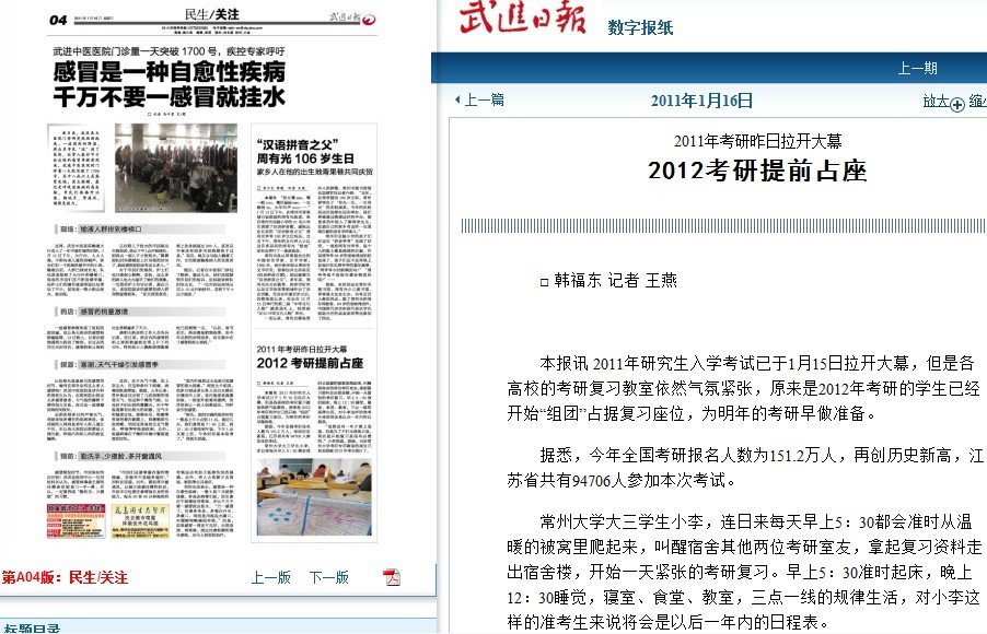 武进日报 文章地址 http://epaper.cz001.com.cn/site1/wjrb/html/2011-01/16/content_381289.htm
