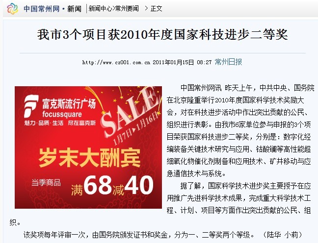 中国常州网 文章地址 http://news.cz001.com.cn/2011-01/15/content_1459269.htm