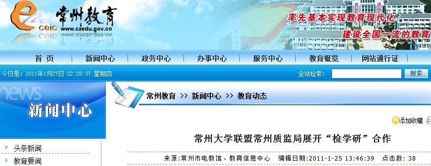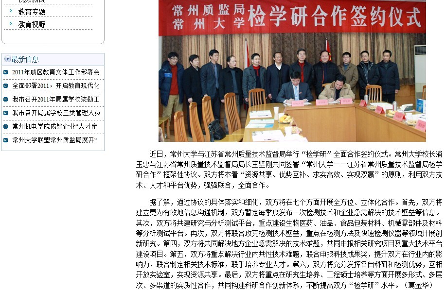 常州教育网:常州大学联盟常州质监局展开“检学研”合作