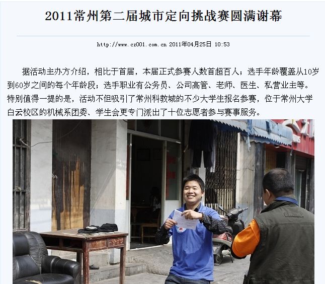 中国常州网报道机械工程学院学生参与常州市第二届城市定向挑战赛