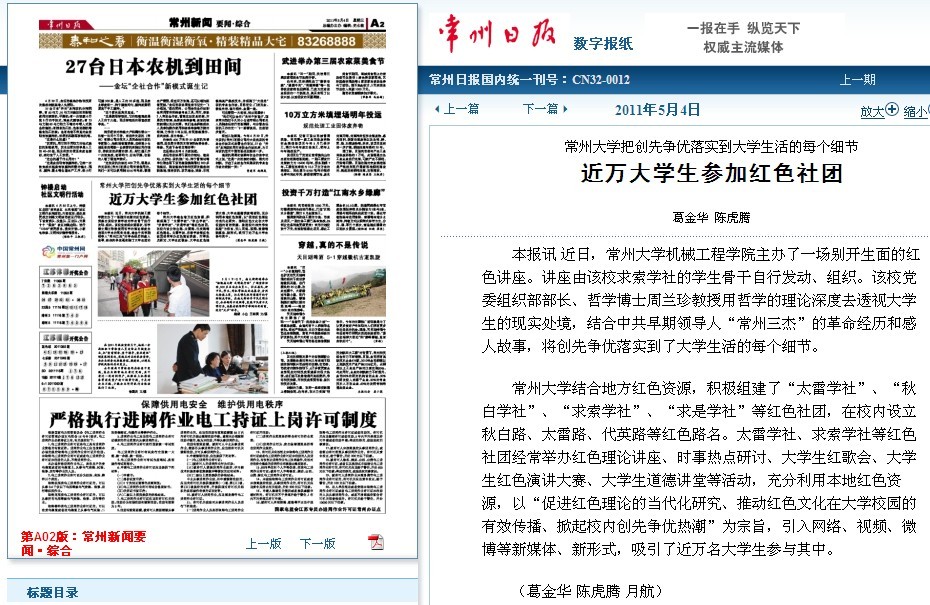 常州日报:常州大学把创先争优落实到大学生活的每个细节