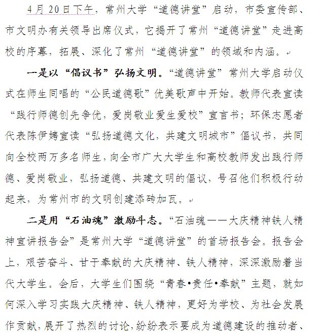 常州市文明创建简报报道我校 道德讲堂