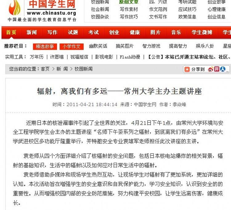 中国学生网:常州大学环境学院开展“世界地球日”活动之辐射安全主题讲座