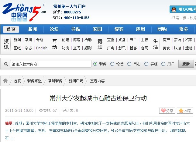 中吴网:常州大学发起城市石雕古迹保卫行动