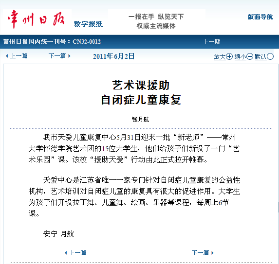 常州日报文章地址: http://epaper.cz001.com.cn/site1/czrb/html/2011-06/02/content_421700.htm