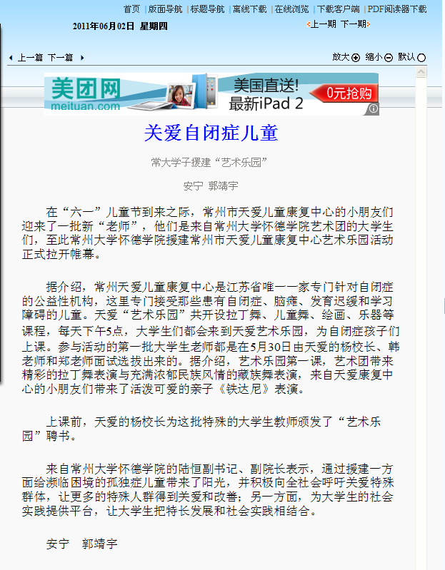 扬子晚报文章地址:http://www.yzwb.net/epaper/html/2011-06/02/content_309974.htm?div=-1