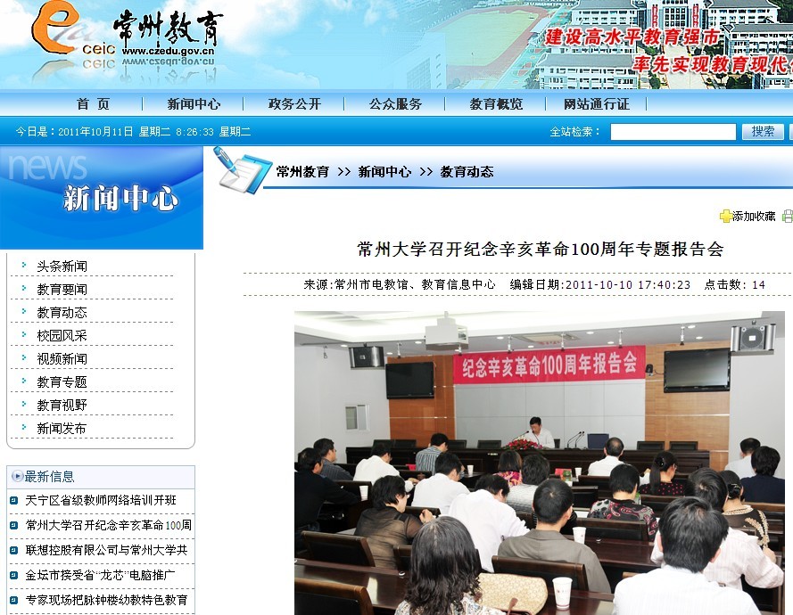 常州大学召开纪念辛亥革命100周年专题报告会