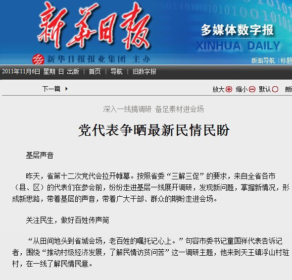 《新华日报》文章网址 http://xhrb.jschina.com.cn/newxh/html/2011-11/06/content_452838.htm