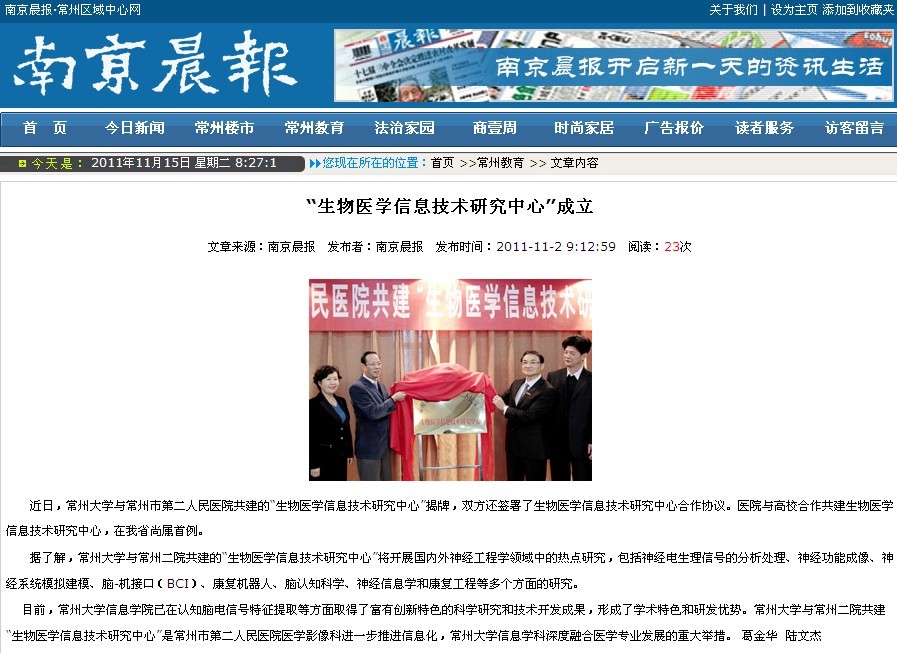 目前,常州大学信息学院已在认知脑电信号特征提取等方面取得了富有创新特色的科学研究和技术开发成果,形成了学术特色和研发优势。常州大学与常州二院共建“生物医学信息技术研究中心”是常州市第二人民医院医学影像科进一步推进信息化,常州大学信息学科深度融合医学专业发展的重大举措。 葛金华 陆文杰