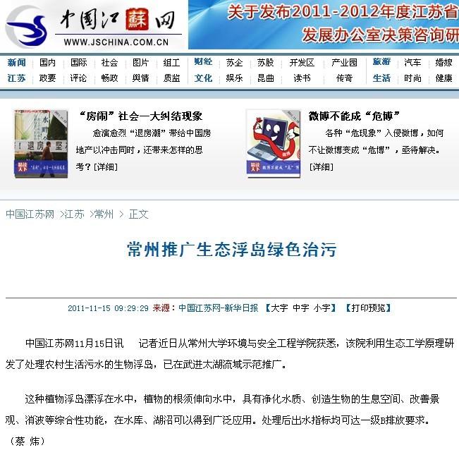 新华日报、中国江苏网文章地址:http://jsnews.jschina.com.cn/system/2011/11/15/012076404.shtml