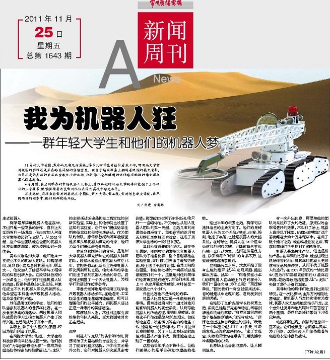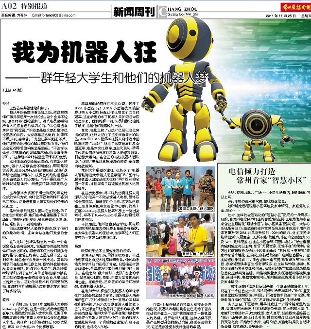 《常州广播电视报》整版报道我校信息学院科协机器人团队