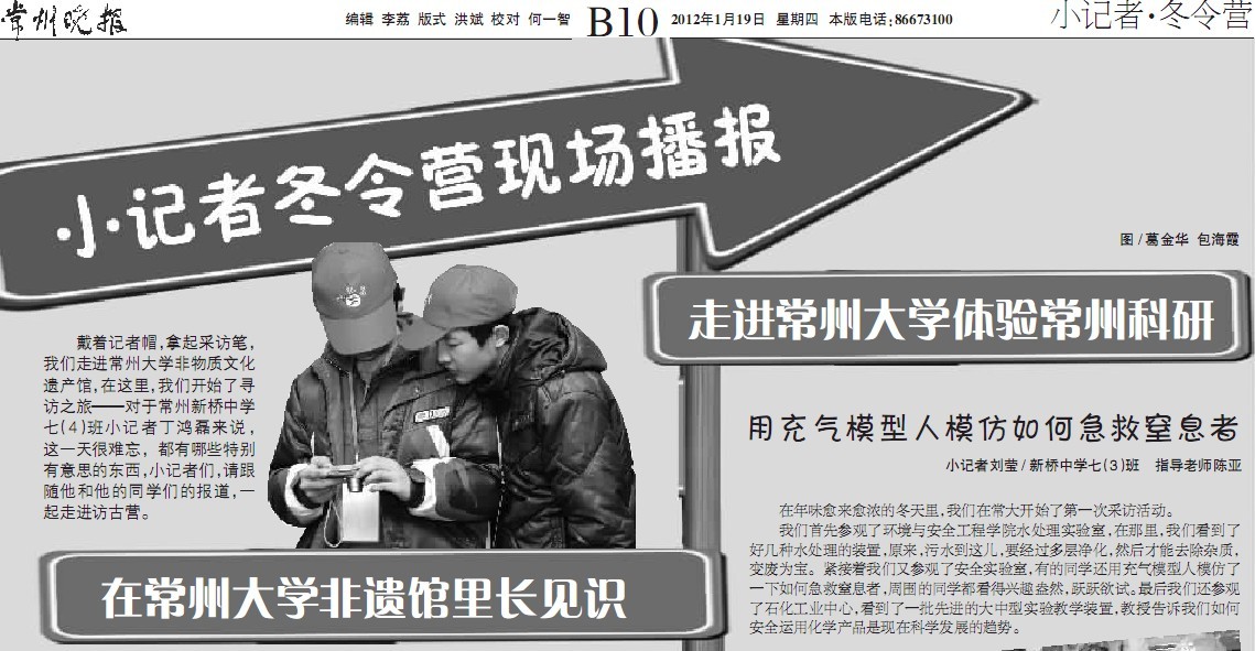 《常州晚报》整版报道小记者活动走进常州大学