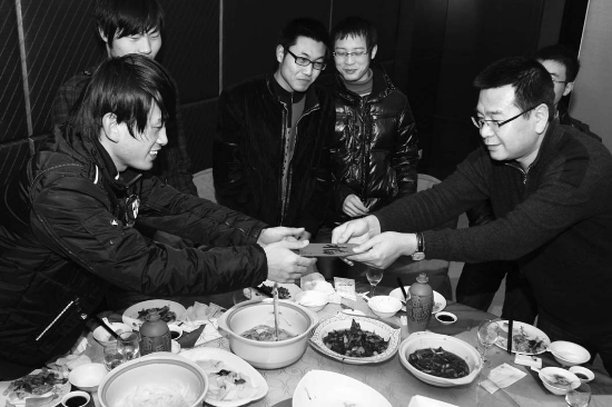昨天,小年夜,常州大学有23个学生没有回家过年。学校组织这些学生一起享用丰盛的年夜饭,校领导还给他们发了红包,让不回家的学生也感受到家的温暖。吴恺 文摄