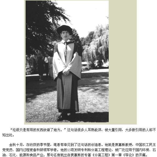 金秋十月,在收获的季节里,笔者有幸见到了这句话的创造者。他就是袁惠新教授,中国农工民主党党员、国内过程装备科研领军学者。他的13项发明专利和分离工程理论,被广泛应用于国内环保、石油、石化、能源和食品产业。那句名言就出自袁惠新的专著《分离工程》第一章《导论》的开篇。