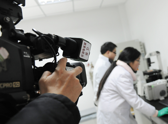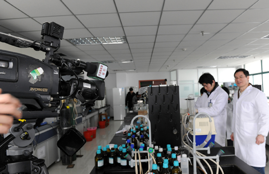 江苏教育电视台记者深入我校制药与生命科学学院实验室采访