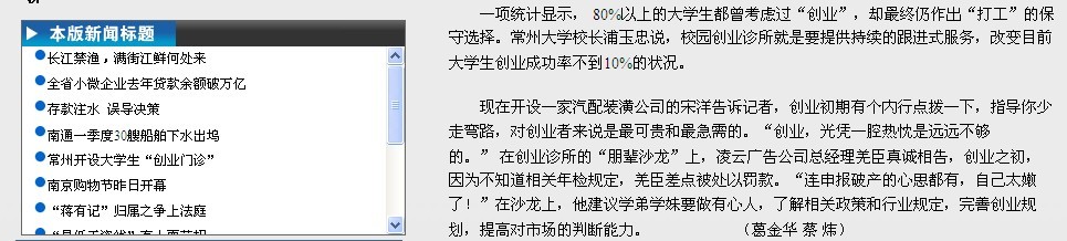 一项统计显示, 80%以上的大学生都曾考虑过“创业”,却最终仍作出“打工”的保守选择。常州大学校长浦玉忠说,校园创业诊所就是要提供持续的跟进式服务,改变目前大学生创业成功率不到10%的状况。