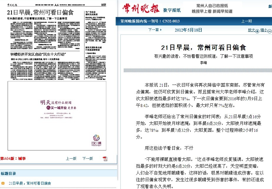 《常州晚报》文章地址一:http://epaper.cz001.com.cn/site1/czwb/html/2012-05/22/content_532001.htm