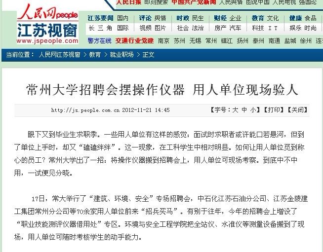 常州大学招聘会摆操作仪器 用人单位现场验人