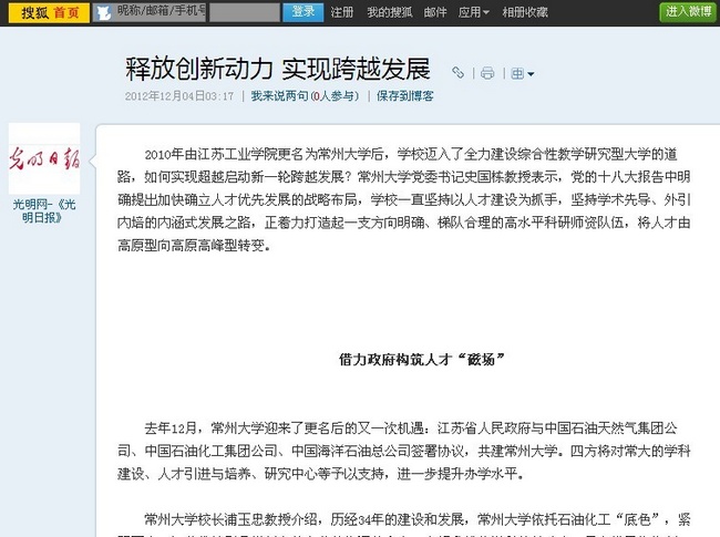 去年12月,常州大学迎来了更名后的又一次机遇:江苏省人民政府与中国石油天然气集团公司、中国石油化工集团公司、中国海洋石油总公司签署协议,共建常州大学。四方将对常大的学科建设、人才引进与培养、研究中心等予以支持,进一步提升办学水平。