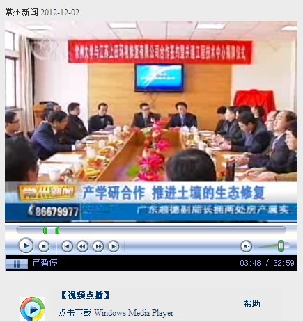 常州电视台报道我校与江苏上田环境修复有限公司产学研合作暨共建工程技术中心揭牌