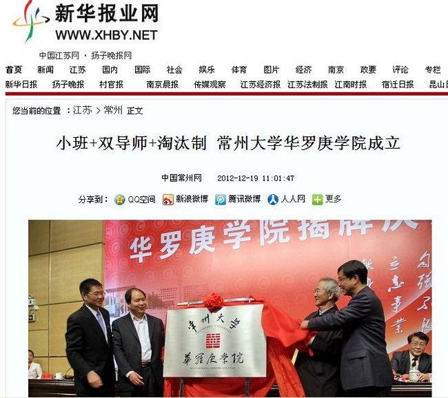 新成立的华罗庚学院,被该校党委书记史国栋称为常州大学的教育改革“特区”,专门培养拔尖创新人才。在过去几年中,常州大学五年三次问鼎国家科技进步二等奖和国家技术发明二等奖;先后在全国各地建立了100多家产学研合作基地,与常州所有县区市乃至乡镇建立了对接。