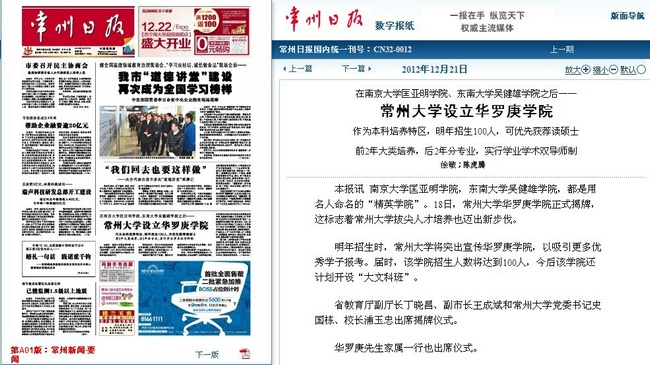 常州大学设立华罗庚学院