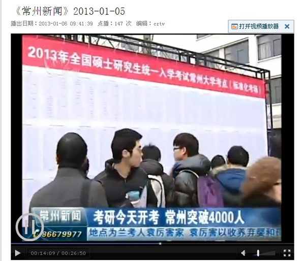 常州电视台:考研今天开考 常州突破4000人