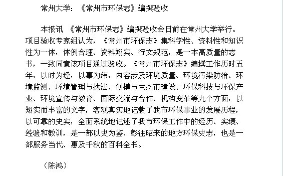 常州大学:《常州市环保志》编撰验收