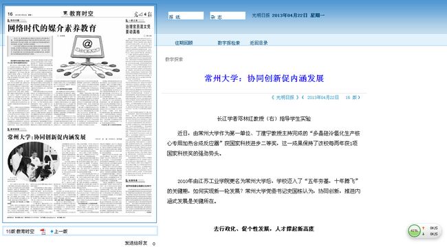 4月22日,光明日报以《常州大学:协同创新促内涵发展》为题报道了我校近些年在人才培养、师资队伍人才引进建设、教学改革、产学研特色、大学生管理和思想教育、大学创业等各个层面的学校创新和内涵建设。