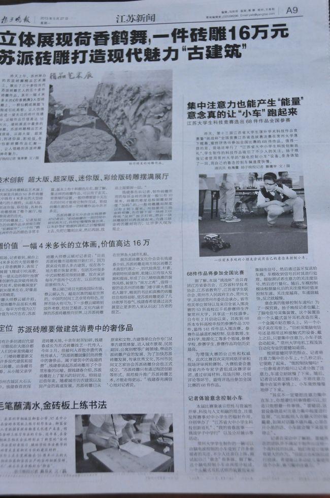 扬子晚报报道第十三届江苏省大学生课外学术科技作品竞赛暨“挑战杯”全国竞赛江苏省选拔赛决赛在我校举办