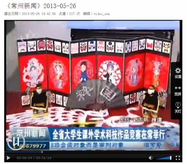 常州电视台原视频网址:http://www.cztv.tv/vod/folder69/folder48/folder53/2013-05-26/9734.html (编辑 陈虎腾)