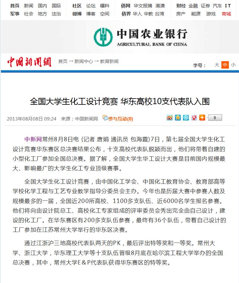 全国大学生化工设计竞赛 华东高校10支代表队入围