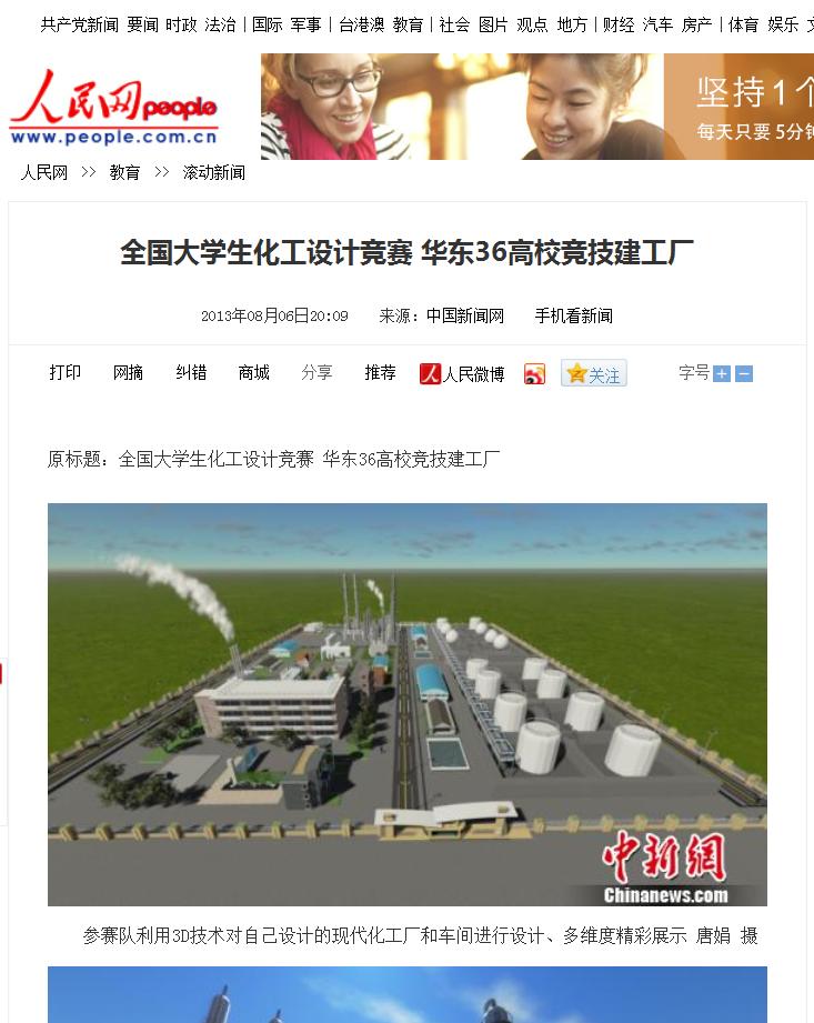 常州石油化工学院副院长此次华东赛区的评审专家马江权教授介绍,该赛事是对学生的化工知识综合运用能力、化工设计软件的应用能力和创新意识的全方位考查,旨在从多方面培养大学生的现代工程设计、团队协作、工程实践和创新能力,是充分展示高校科研、教学能力和综合实力的平台。本届设计题目为:为某一石化/煤化总厂设计一座丙烯制基本有机化工原料的合成分厂。参赛者为全日制在校本科生,以团队形式参赛,每队5人,设队长1人。每个团队5名同学在教师指导下,历时三个月,运用AspenPlus、3DPlant等众多仿真、模拟、设计、校核软件,始终贯穿“环保、节约、安全、实用、创新、实际与合理”的理念,设计出一座具有自主知识产权、造价几十亿元的现代化工厂,其设计包括了厂区布置、车间设计、管道设计、自控设计、经济概算、可行性分析等近二十余项子项目,为我国石化/煤化总厂丙烯的大规模、合理化、工业化利用提供了可行性参考。参赛队利用3D技术对自己设计的现代化工厂和车间进行设计、多维度精彩展示,大大激发了学生科技创业、实践成才的热情。