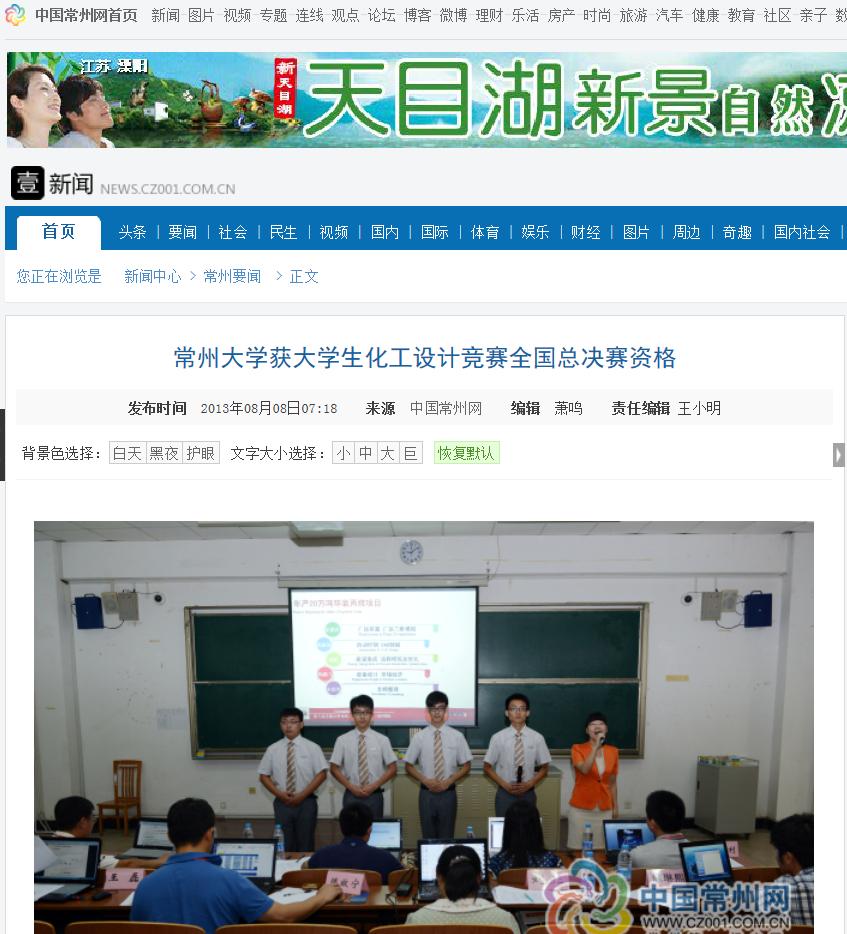 常州大学获大学生化工设计竞赛全国总决赛资格