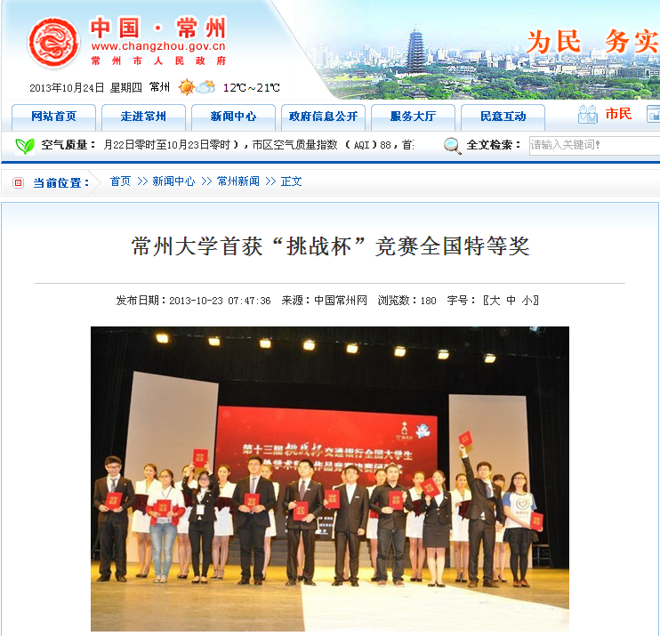 常州大学在此届“挑战杯”国赛中,无论获奖数量,还是级别,都取得历史性突破。并实现了常州高校在此项赛事中特等奖零的突破。