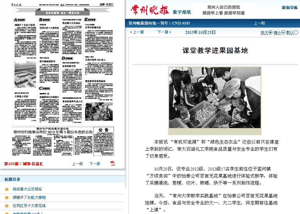本报讯 “有机可追溯”和“绿色生态农业”这些以前只在课堂上学到的词汇,常大石油化工学院食品质量与安全专业的学生们有了切身感受。