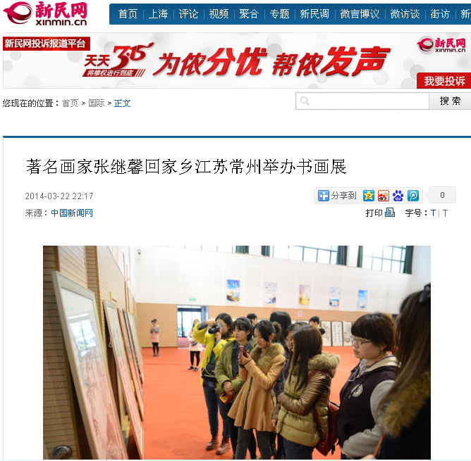 著名画家张继馨回家乡江苏常州举办书画展