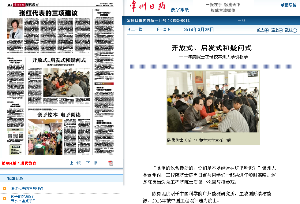 “食堂的伙食挺好的,你们是不是经常在这里吃饭?”常州大学食堂内,工程院院士陈勇日前与同学们一起共进午餐时寒暄。这是陈勇当选为工程院院士后第一次回母校参观。