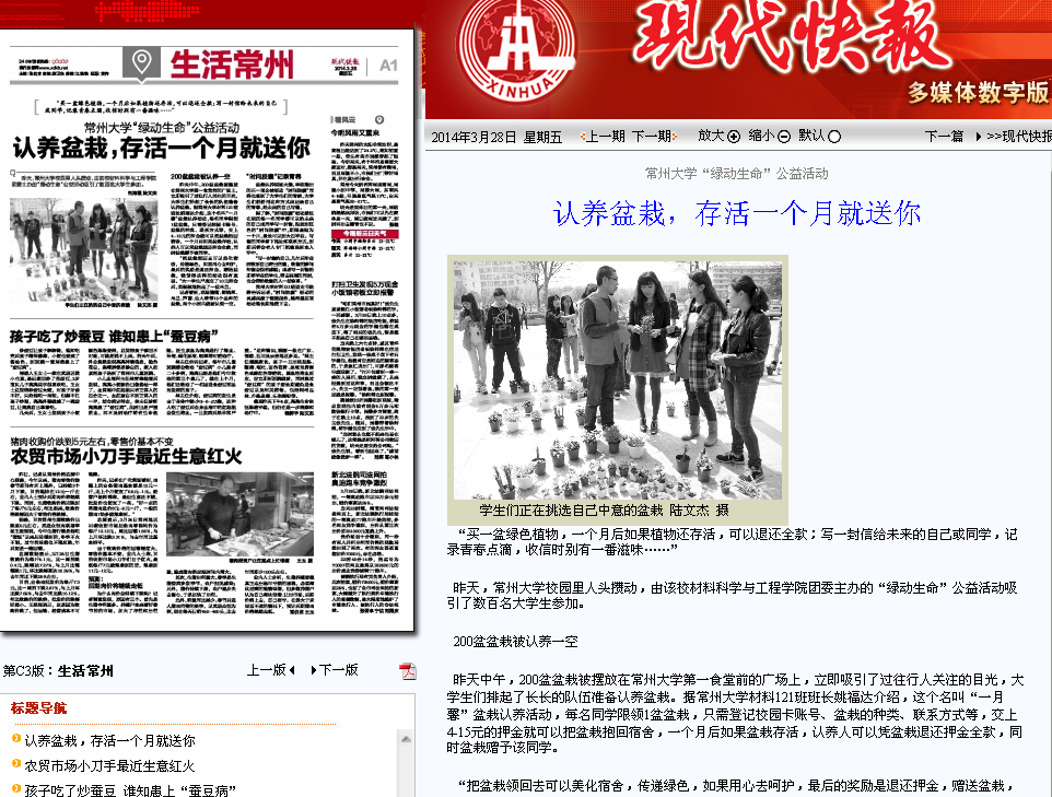 昨天,常州大学校园里人头攒动,由该校材料科学与工程学院团委主办的“绿动生命”公益活动吸引了数百名大学生参加。