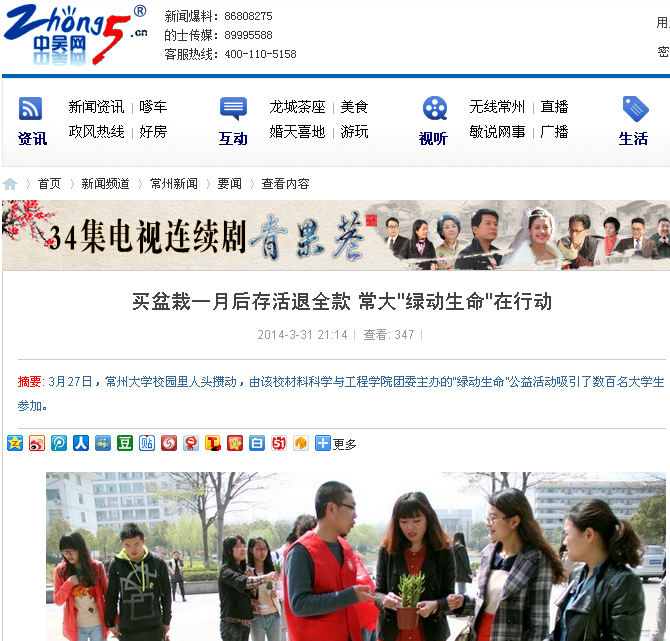 3月27日,常州大学校园里人头攒动,由该校材料科学与工程学院团委主办的“绿动生命”公益活动吸引了数百名大学生参加。