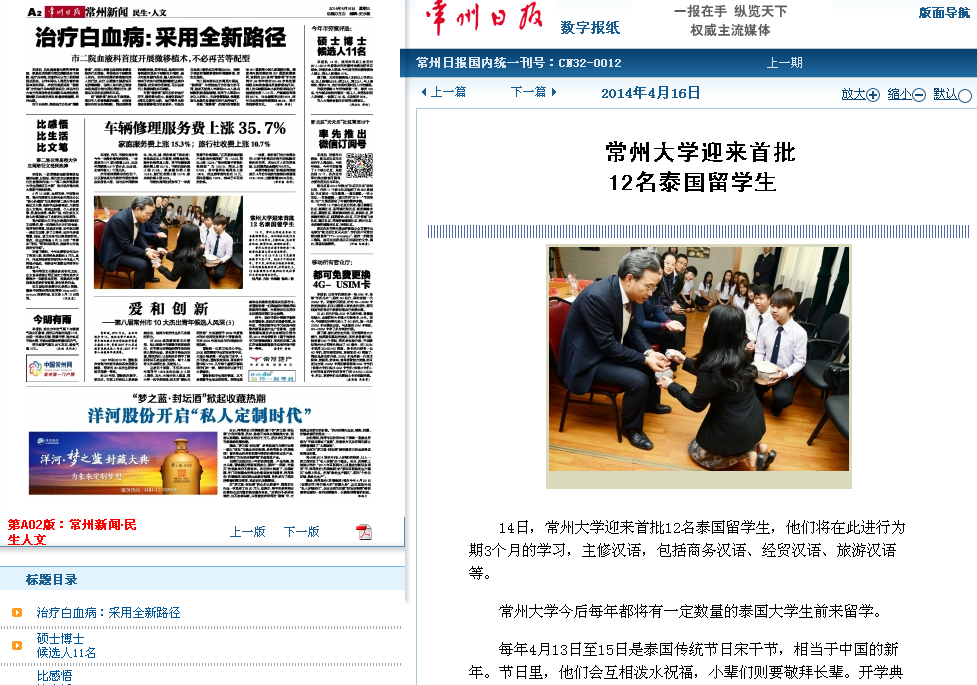 14日,常州大学迎来首批12名泰国留学生,他们将在此进行为期3个月的学习,主修汉语,包括商务汉语、经贸汉语、旅游汉语等。