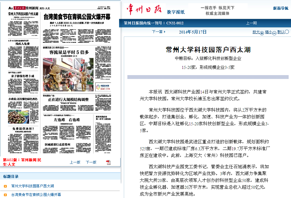 常州大学科技园位于西太湖大学科技园内,将从2万平方米的载体起步,打造集创业、孵化、加速、科技产业为一体的创新园区,中期目标是入驻孵化15-20家科技创新型企业,形成规模企业3-5家。