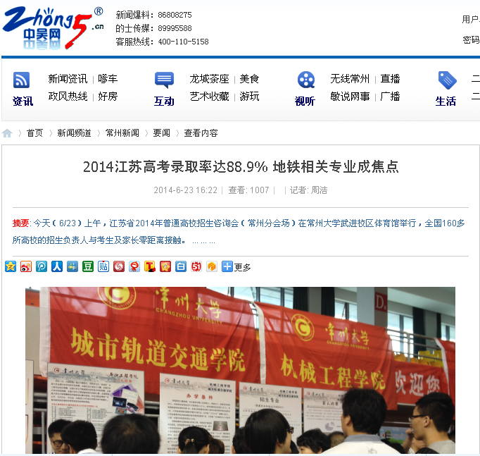 2014江苏高考录取率达88.9% 地铁相关专业成焦点