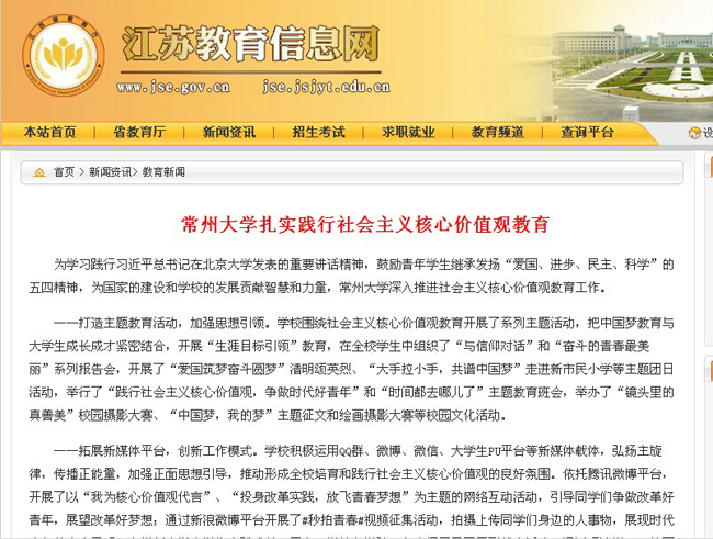 江苏教育信息网:常州大学扎实践行社会主义核心价值观教育